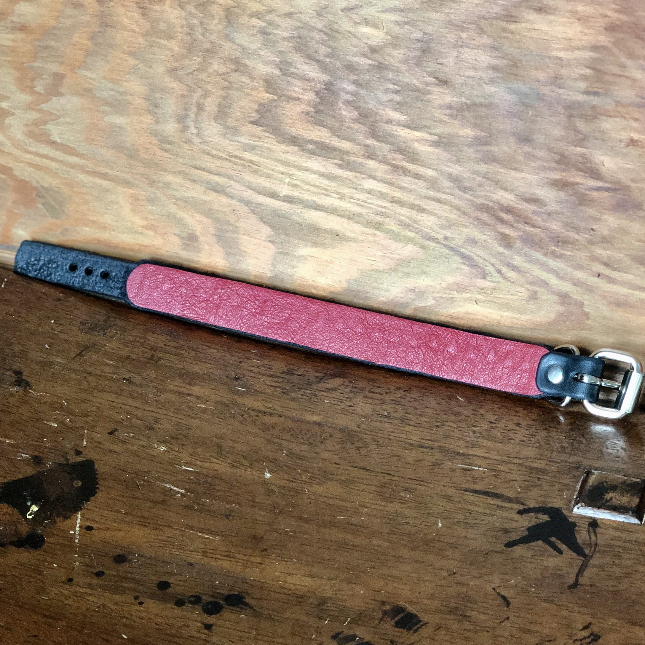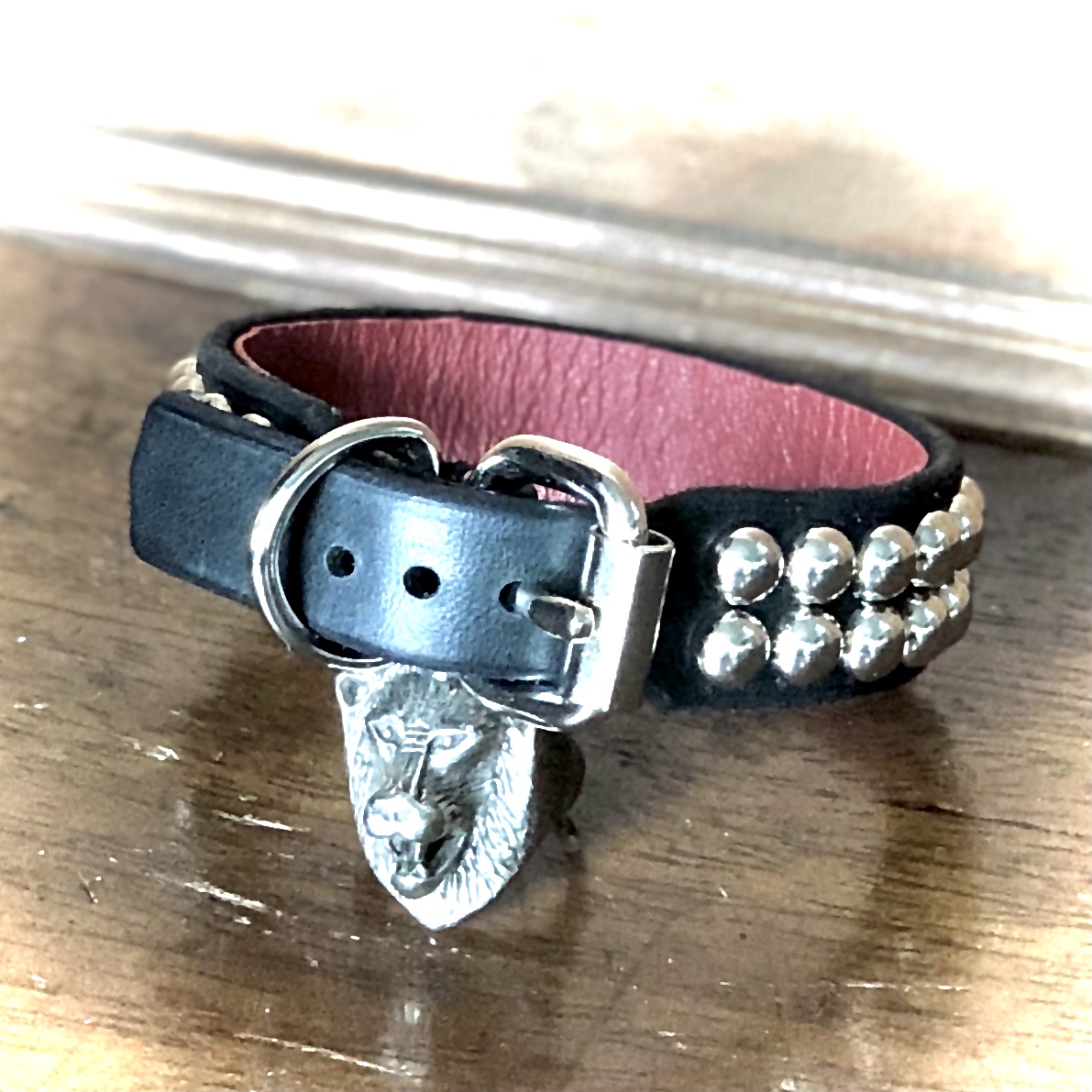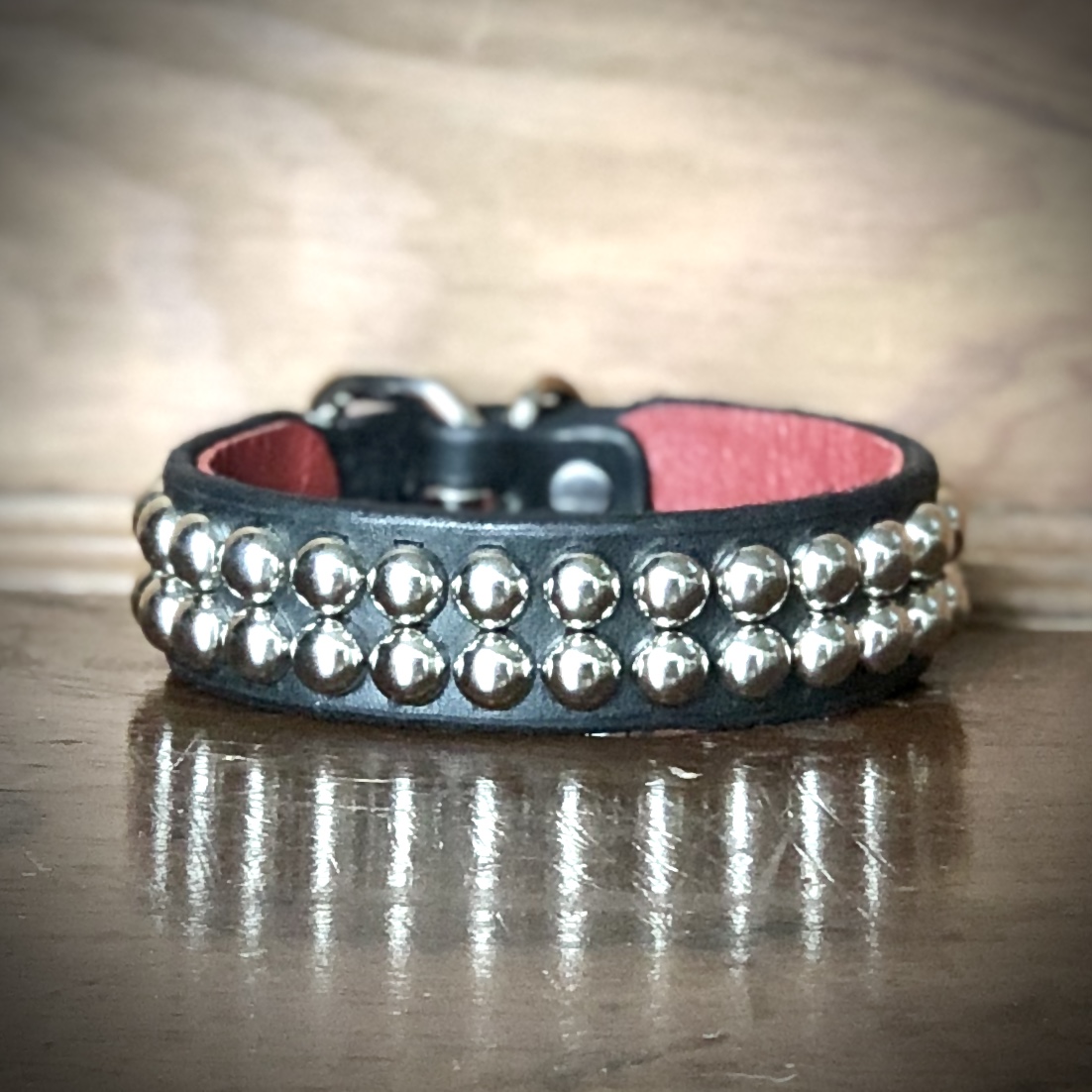 Your bracelet will come finished with a black leather liner unless red leather is specifically requested in a note upon ordering