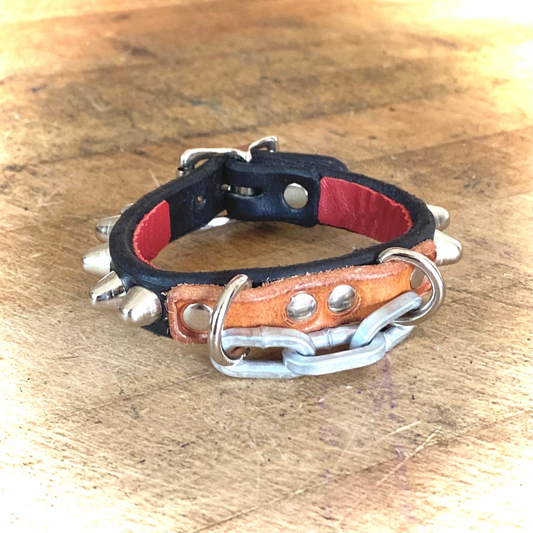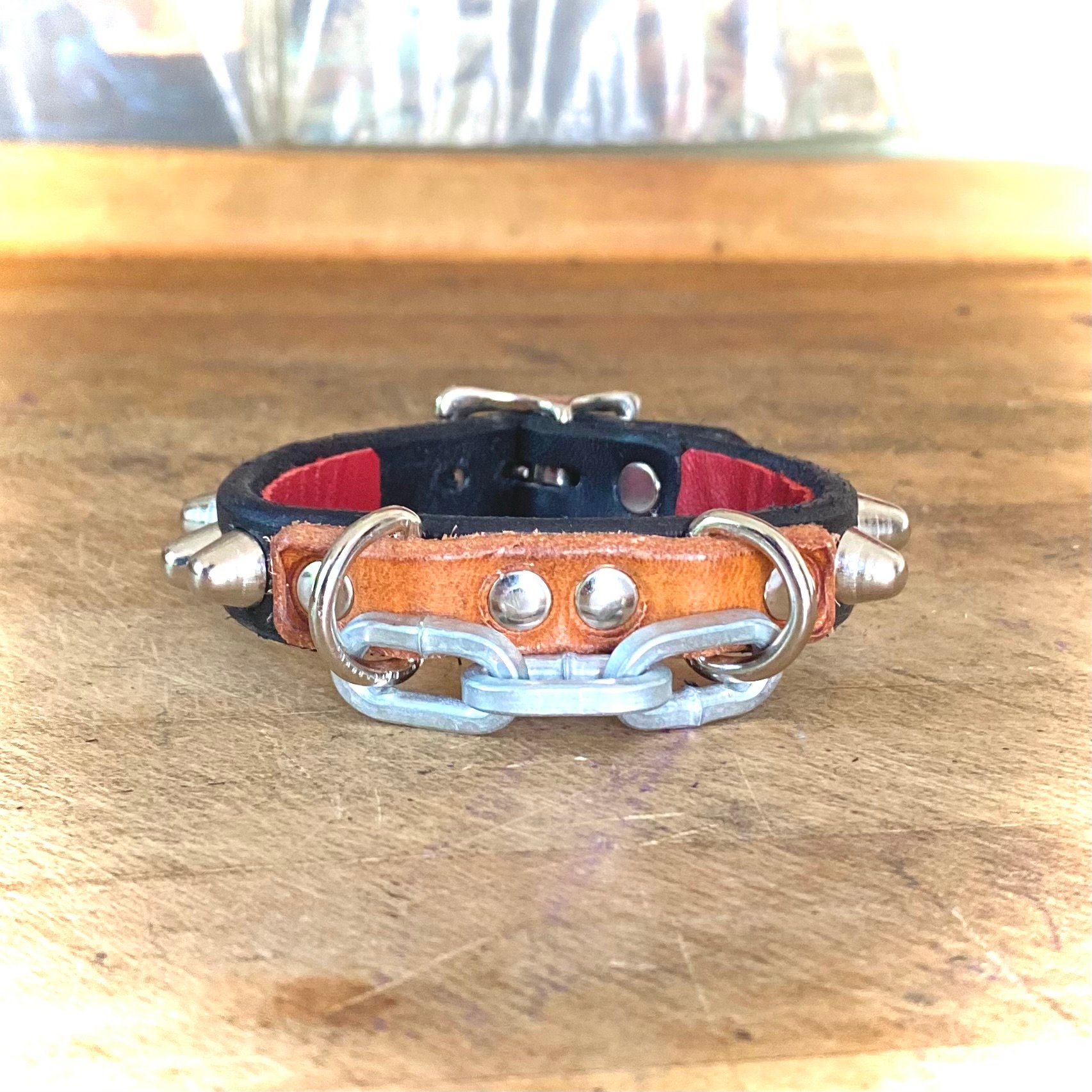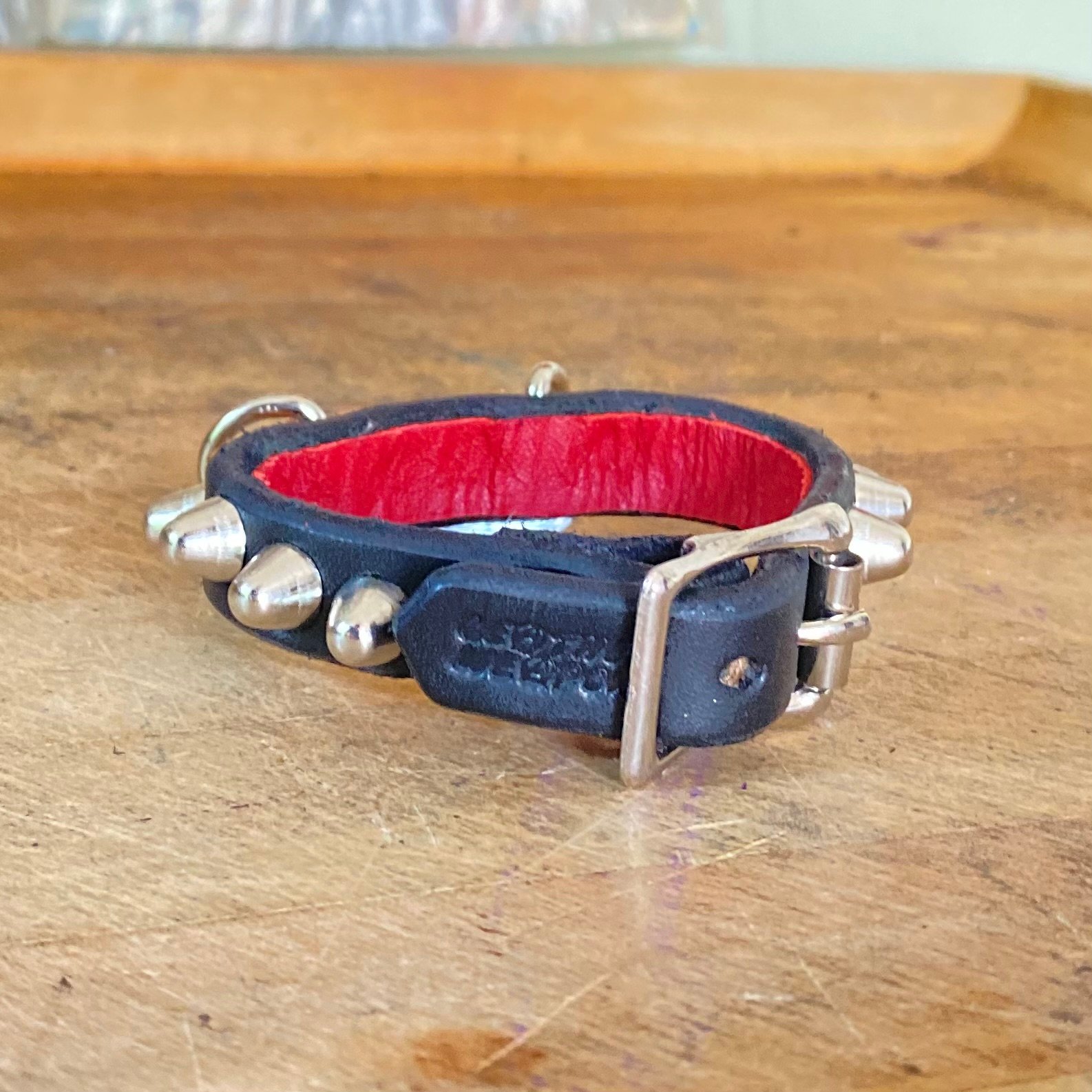 Your bracelet will come finished with a black leather liner unless red leather is specifically requested in a note upon ordering.
