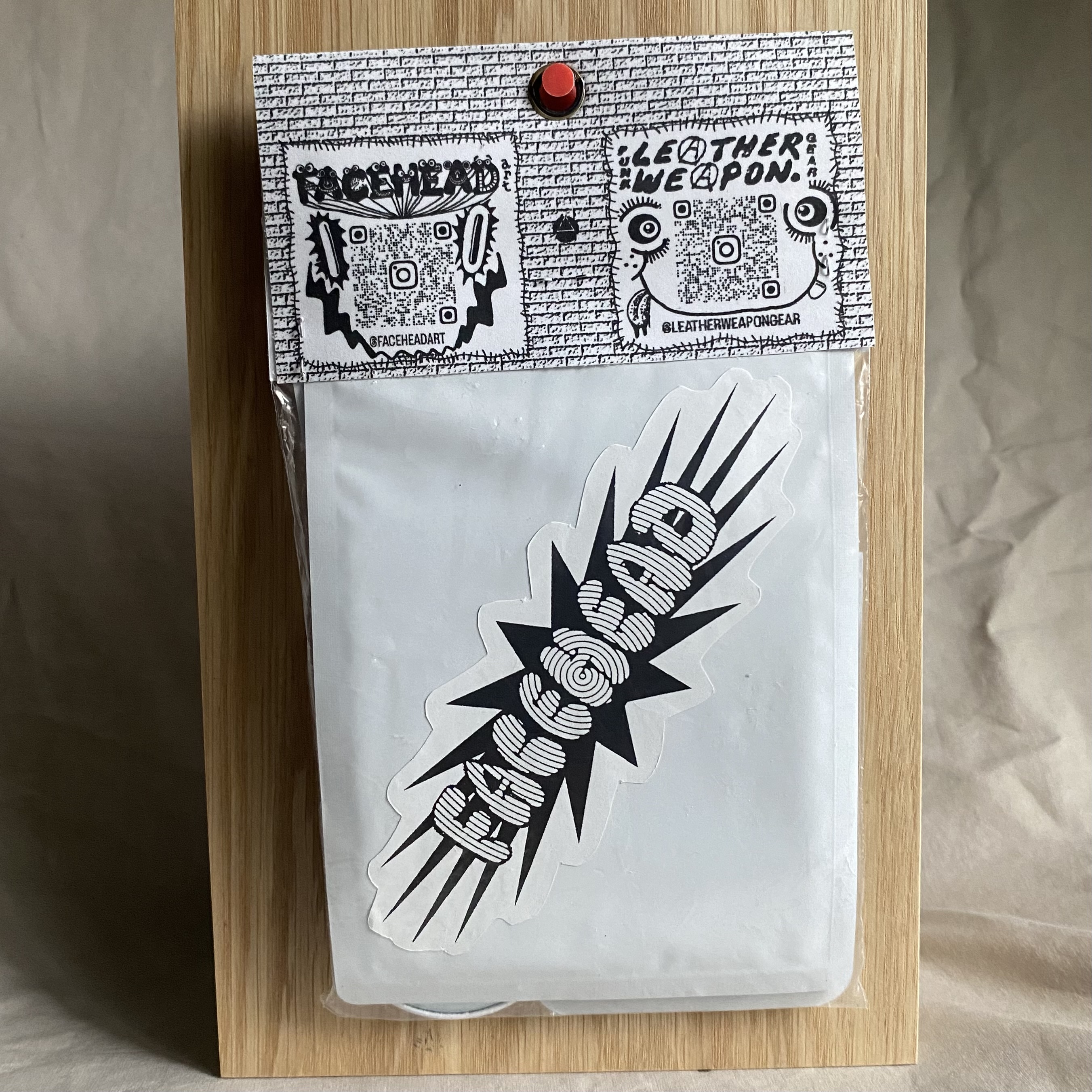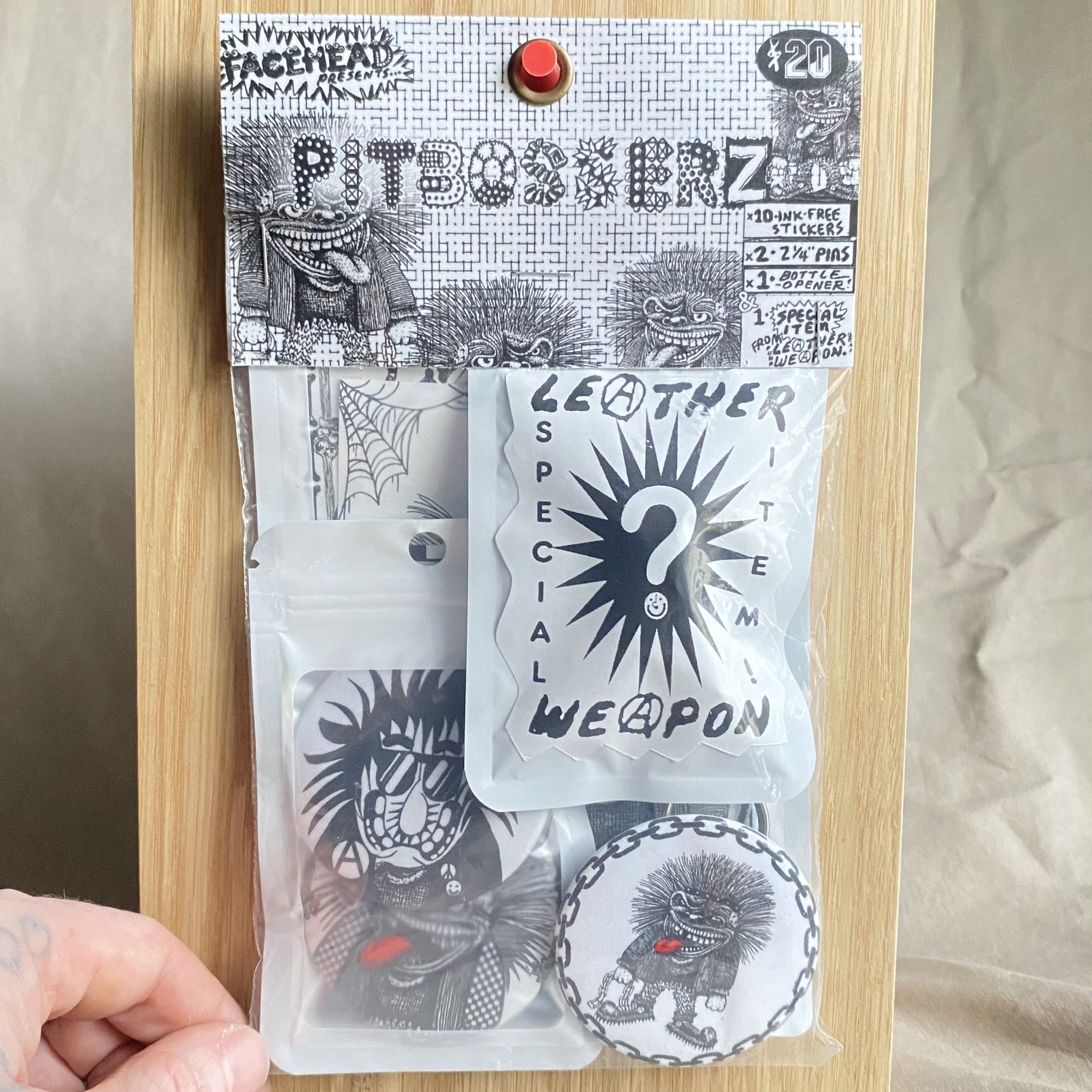 This listing is for Assorted Sticker and Pin packs of varying prices/arrangements, consisting of the aforementioned psyko-punker by yours truly, Face-Head/Leatherhead.