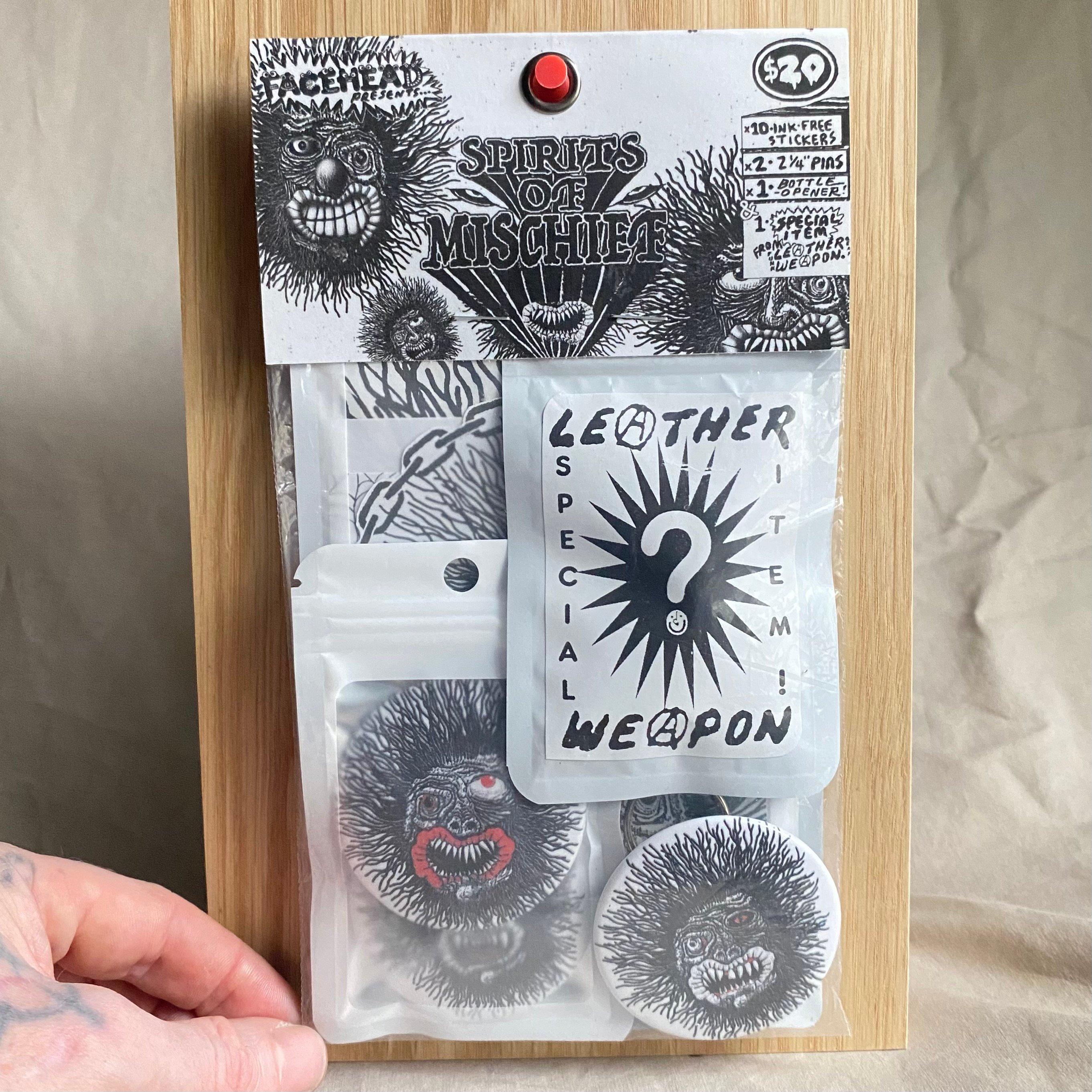 Super-Pack w/ Leather Weapon Special-Item, 10 Stickers, 2-Pins & 1 Bottle Opener ($25.00)