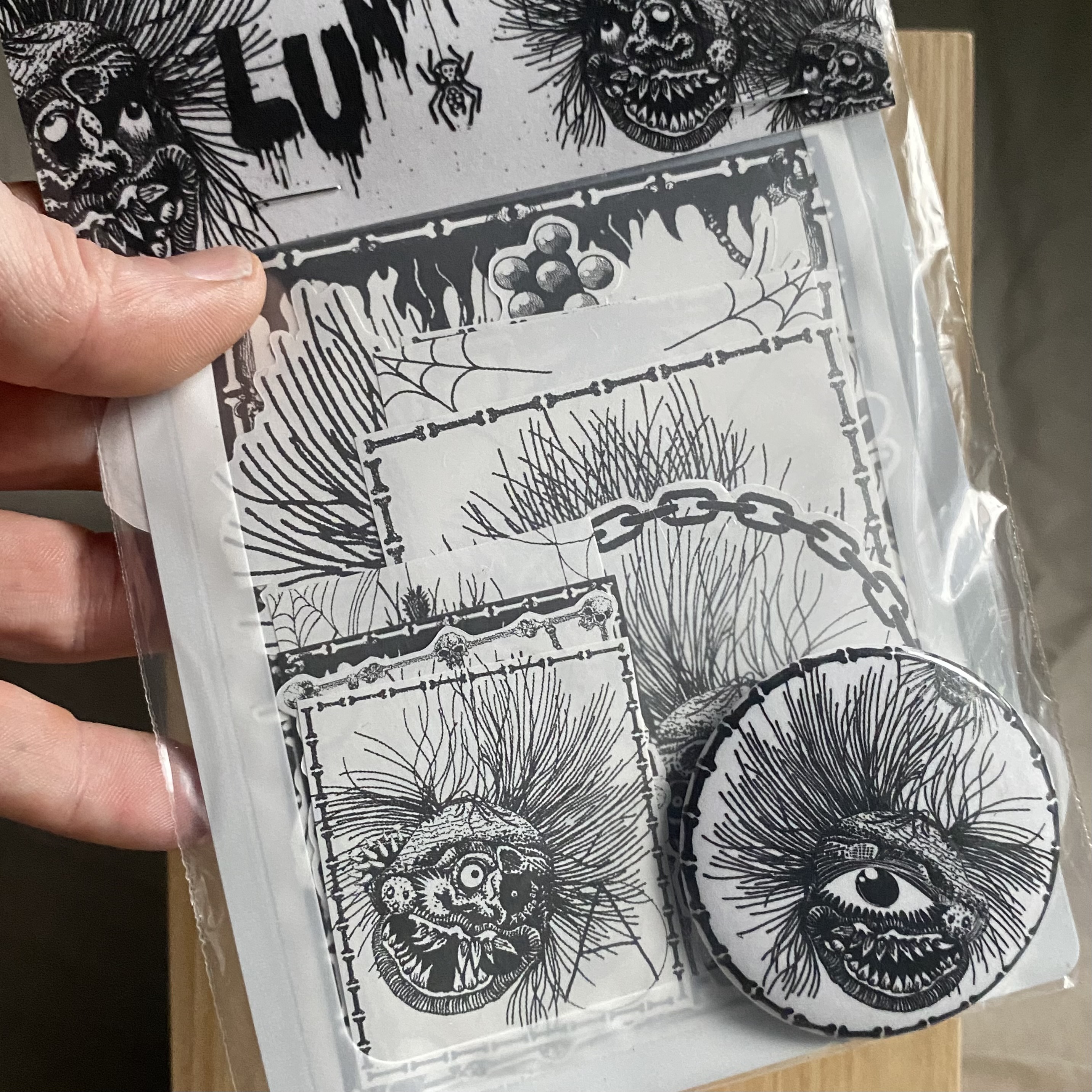 1-Pin, 2 Large Stickers, 4 Medium Stickers, 5 Small Stickers ($10.00)