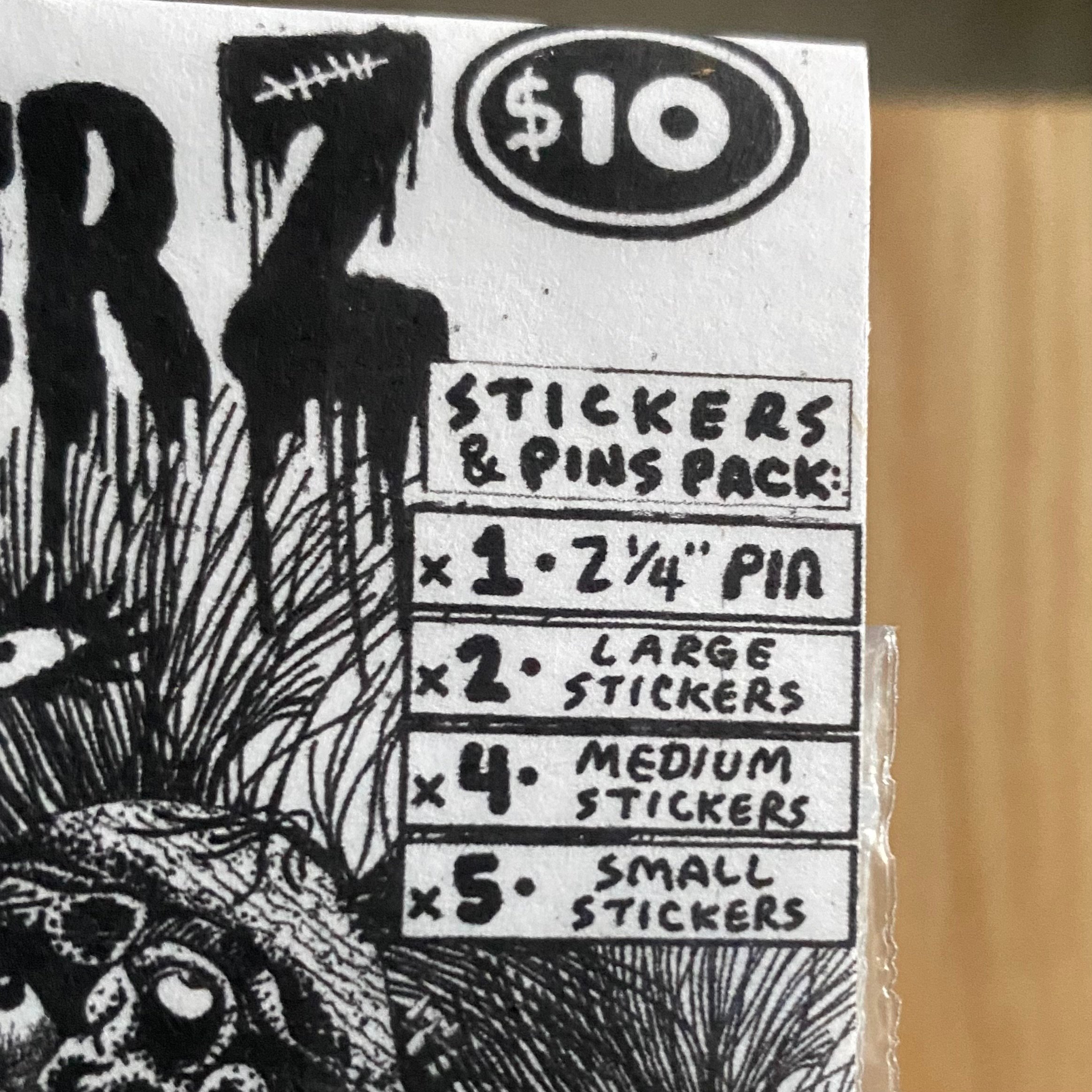 2-Pins, 2 Large Stickers, 3 Medium Stickers, 4 Small stickers ($10.00)