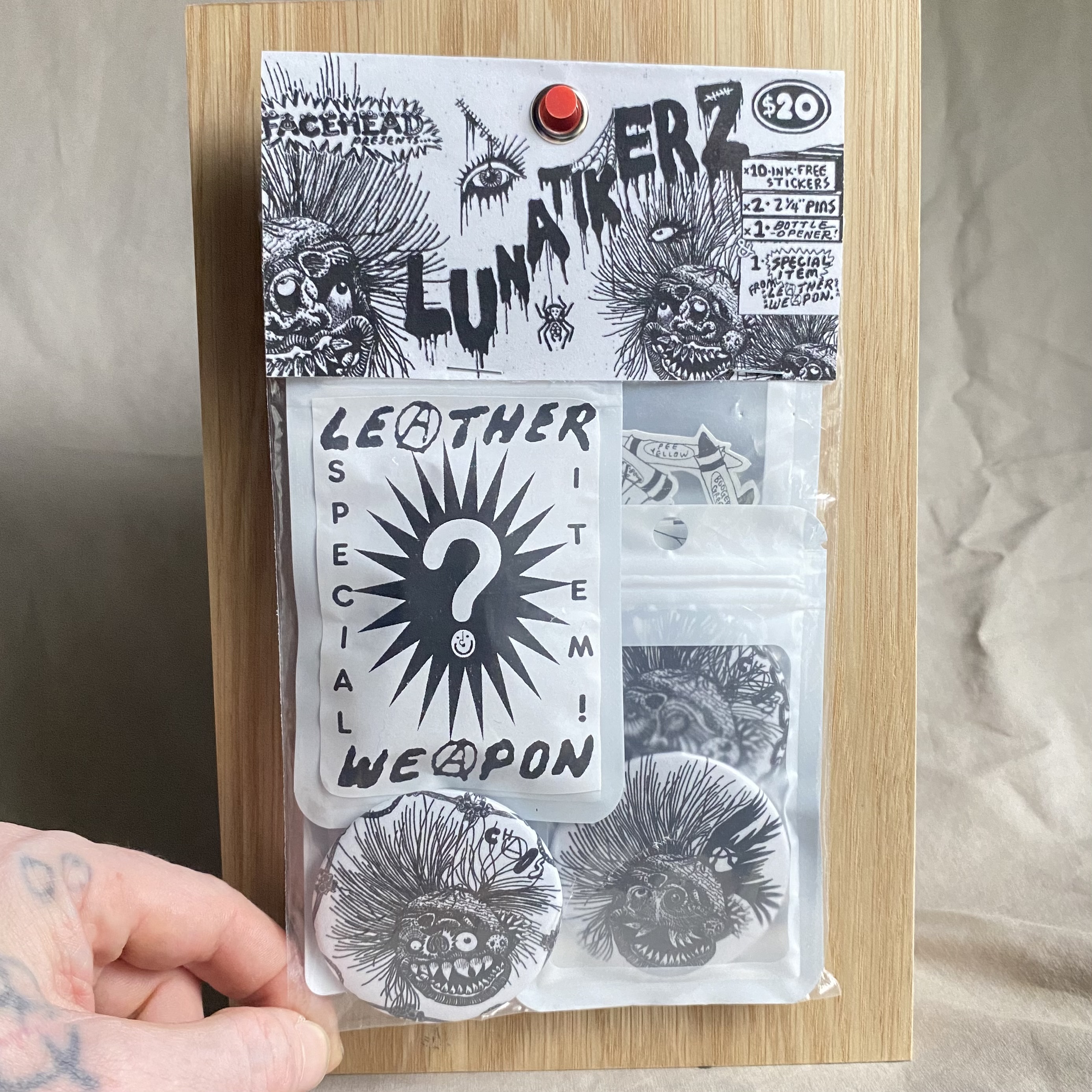 Super-Pack w/ Leather Weapon Special-Item, 10 Stickers, 2-Pins & 1 Bottle Opener ($25.00)