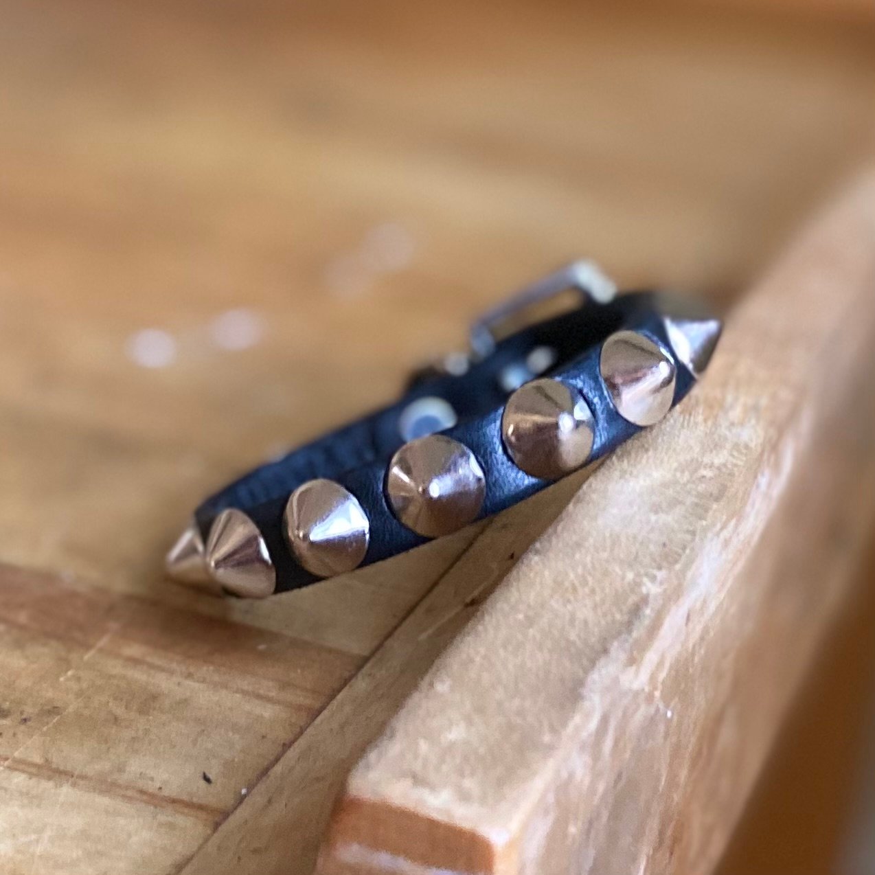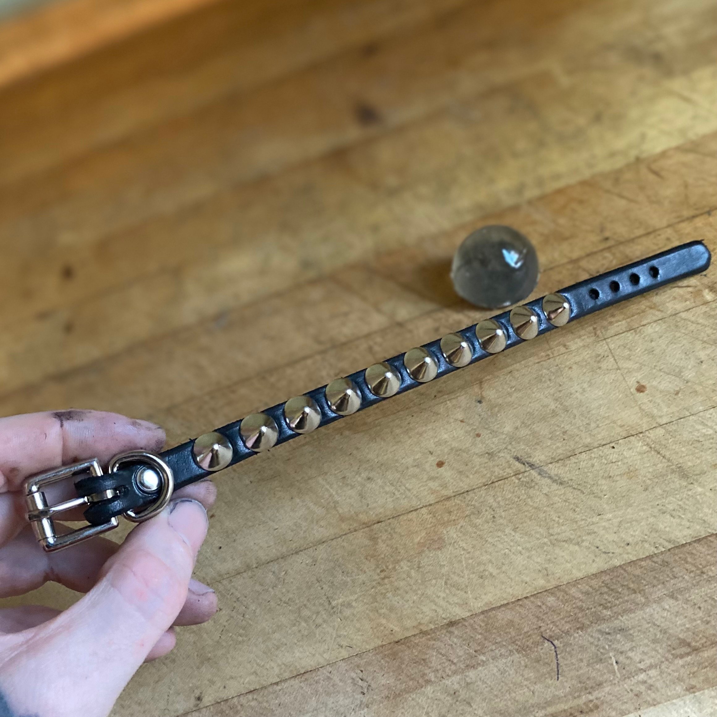 Genuine 1/2” wide black leather with small standard studs