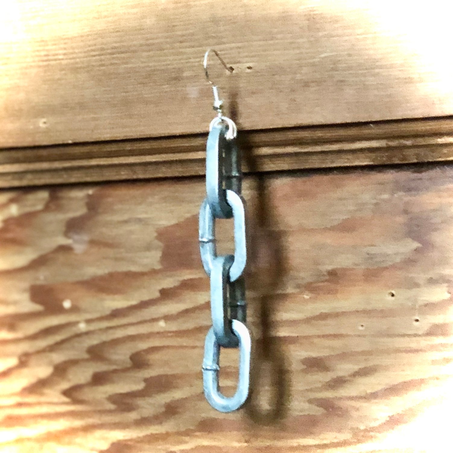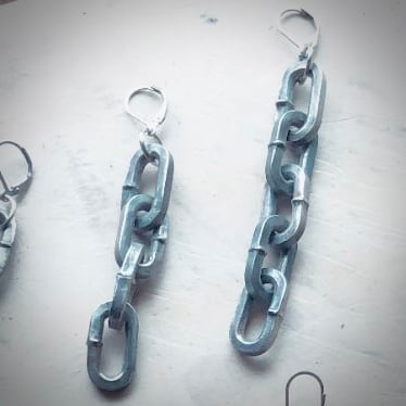 4-links of unique, square-edged steel links w/ earring hook. If you want a leverback earring clasp please include that in a note upon ordering!