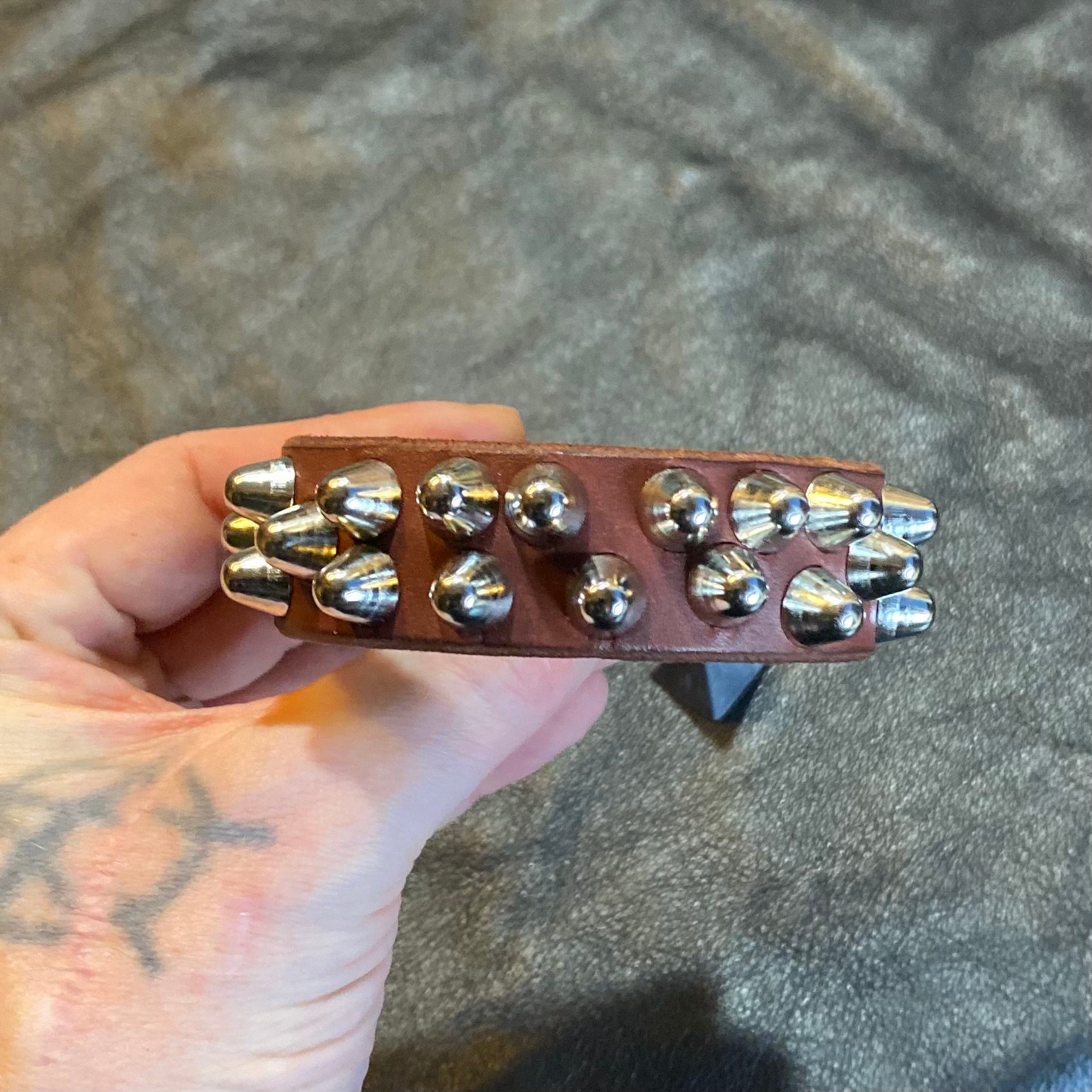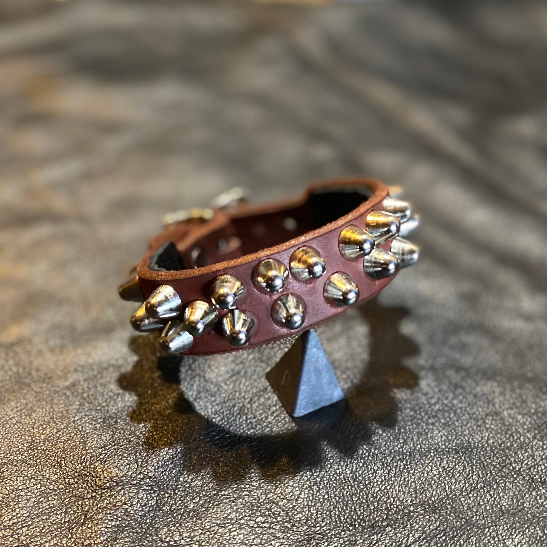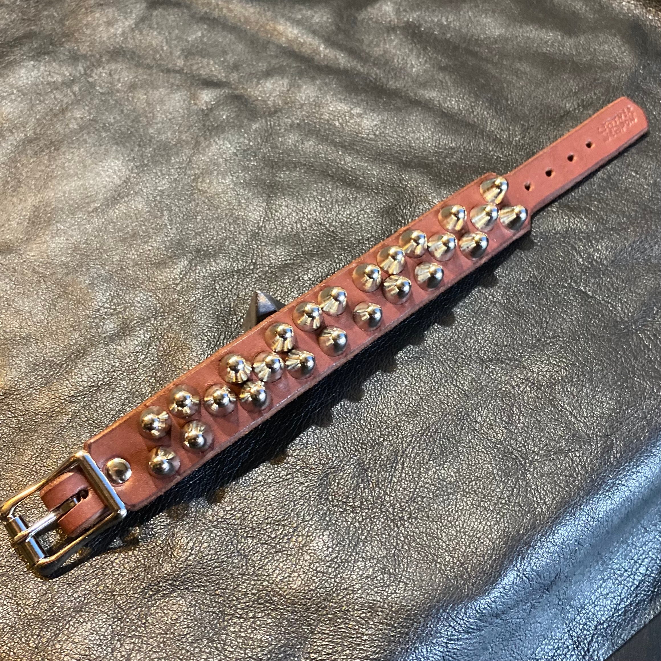 Decorated with chaotic short British studs and finished with self keeper buckle.