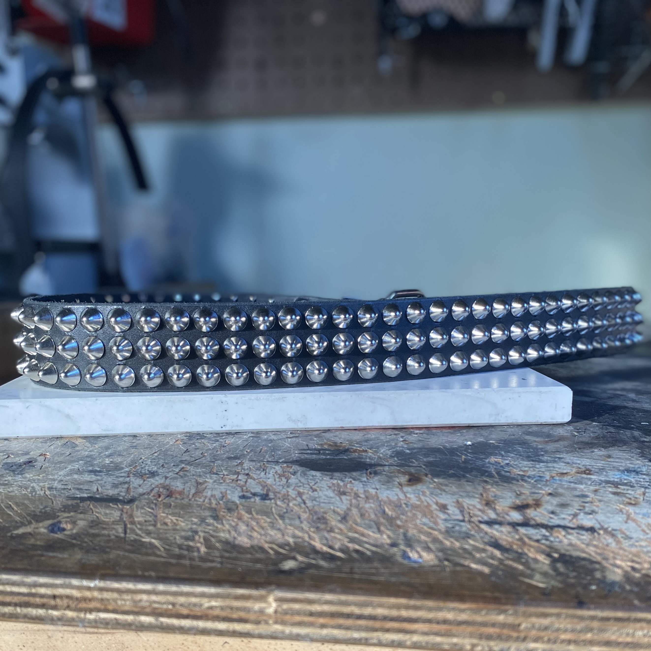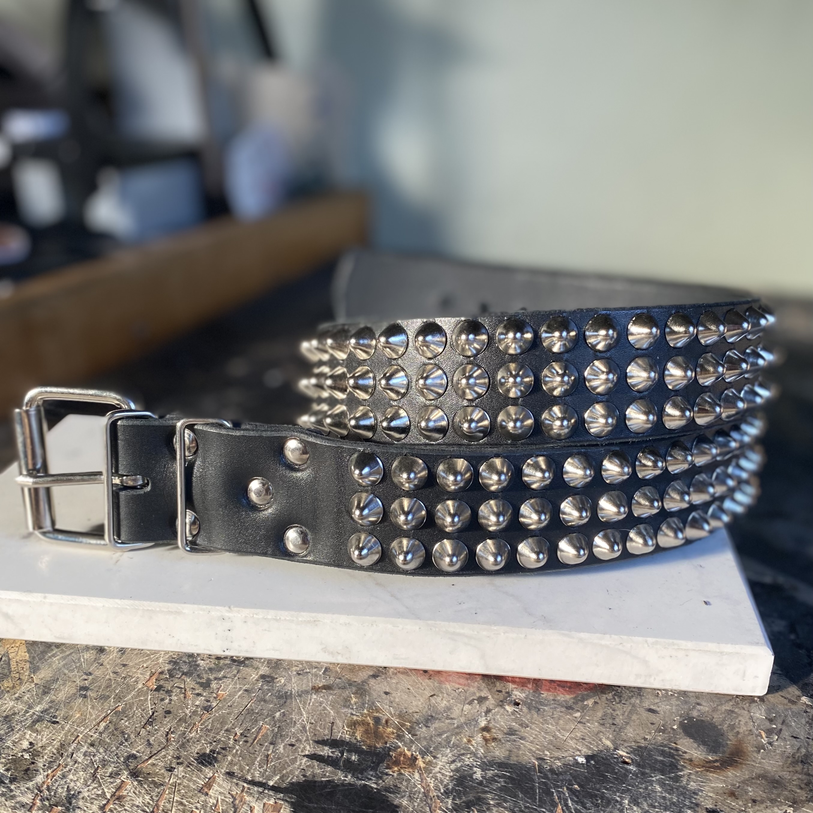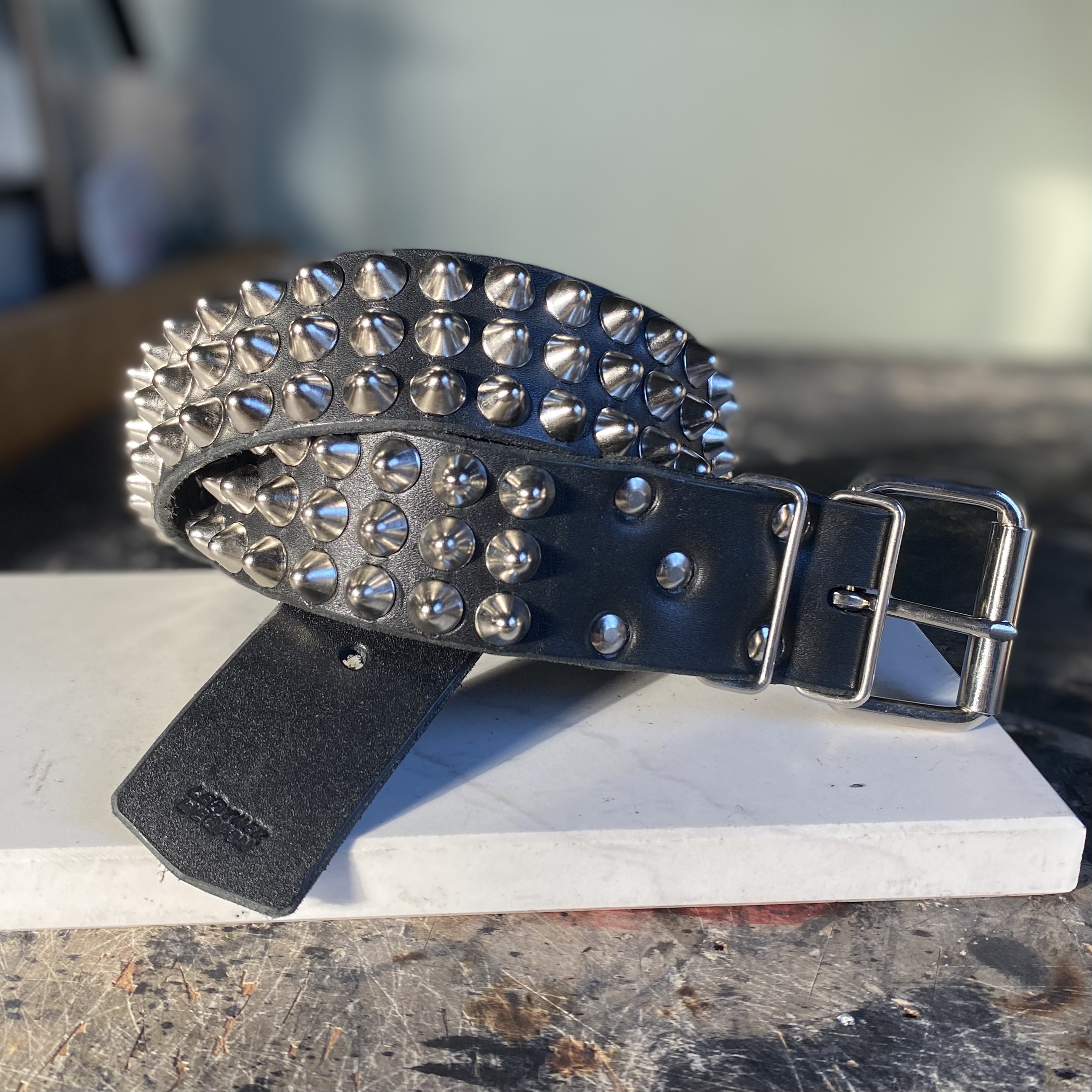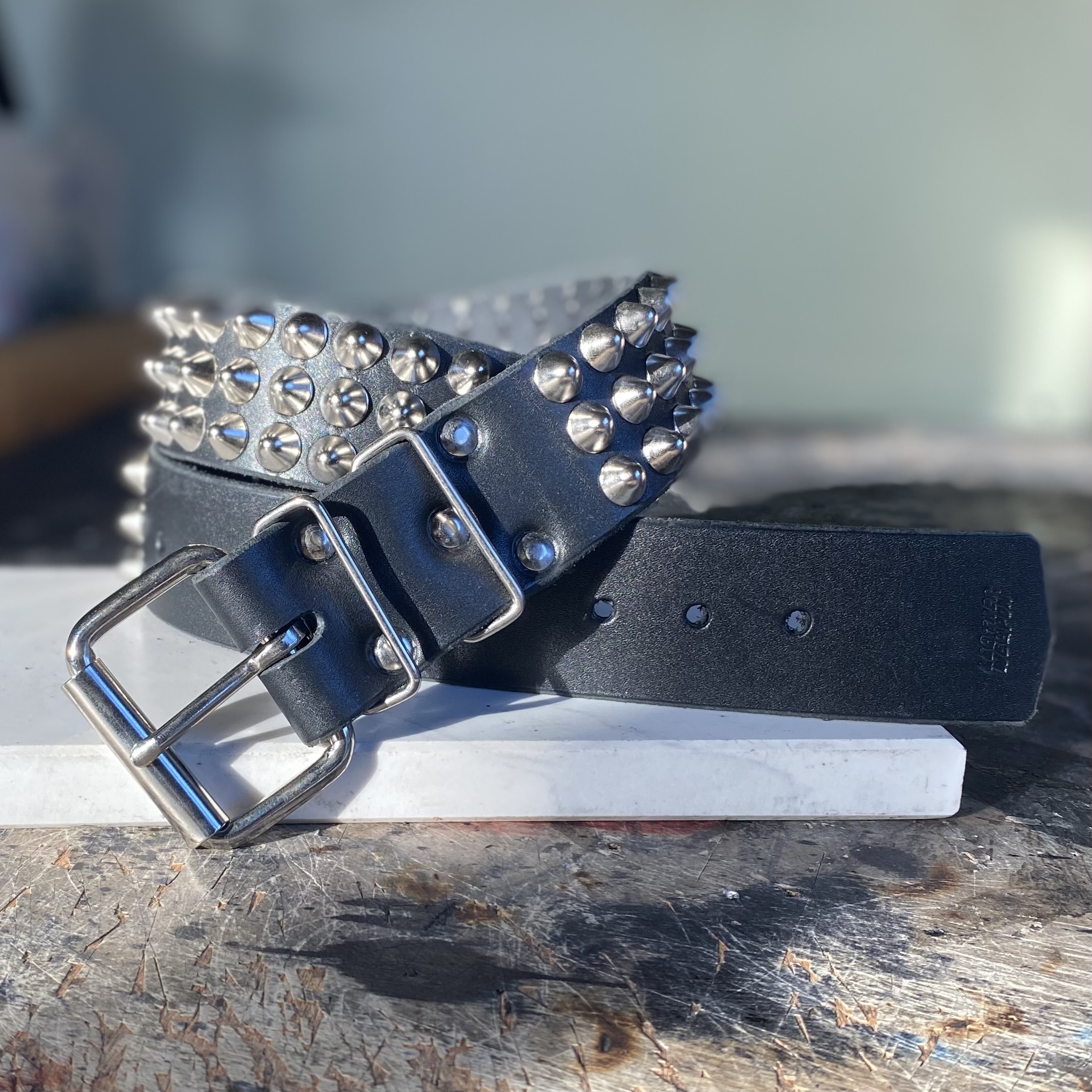 Genuine black leather 1.75” wide, finished with roller buckle & standard British cones.